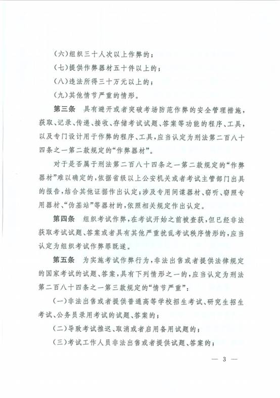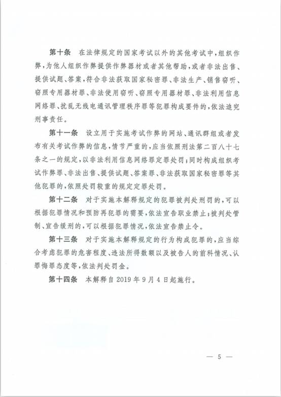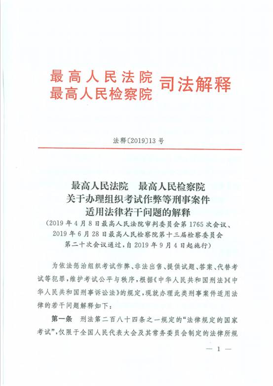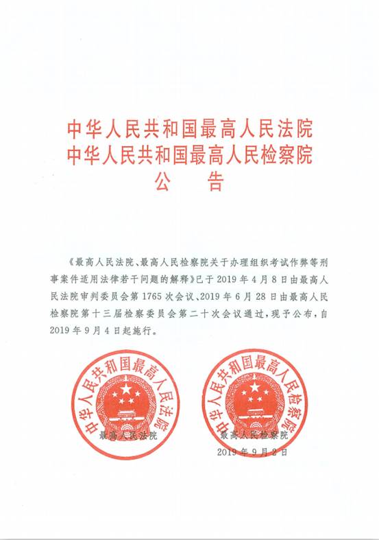 《最高人民法院、最高人民检察院关于办理组织考试作弊等刑事案件适用法律若干问题的解释》
