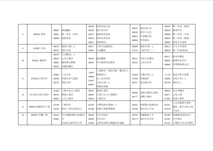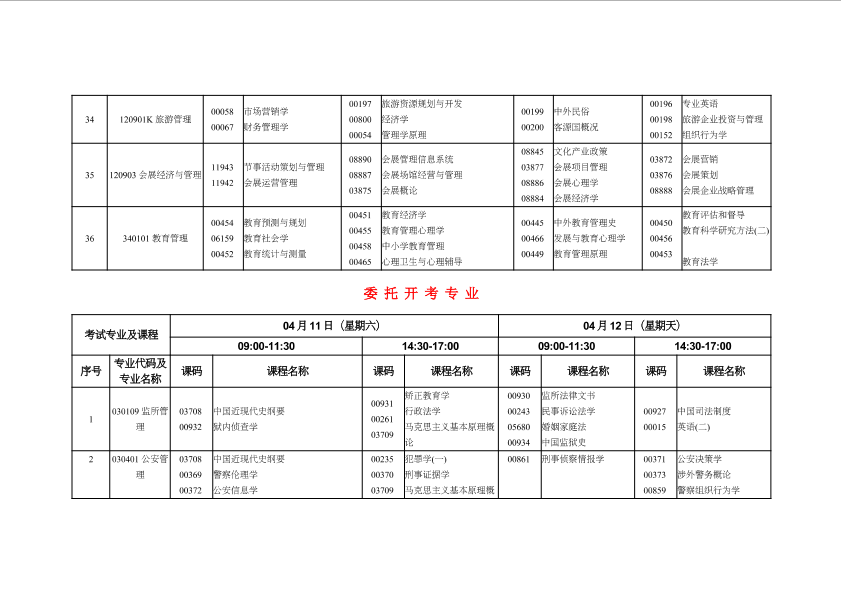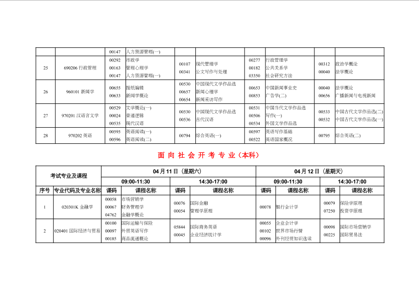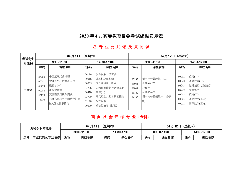 重庆市2020年4月高等教育自学考试计划