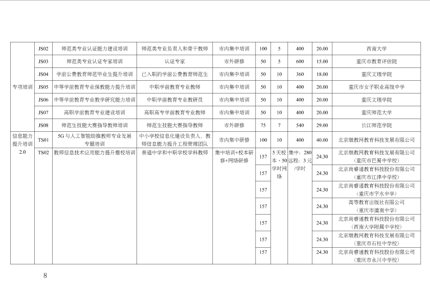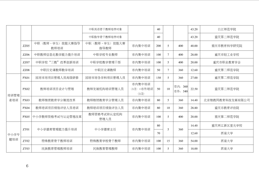 重庆市教育委员会关于公布2020年教师及教育管理干部市级培训项目承担机构名单的通知