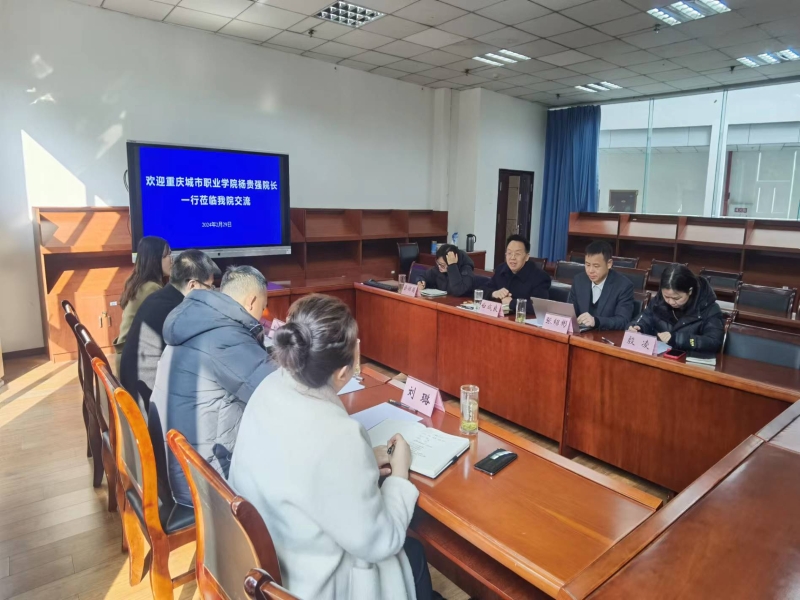 2024年2月29日上午,重庆城市职业学院taptap点点体育院长杨贵强一行到校展开合作交流,学院白成良书记及学历教育和办公室相关人员参与,双方就合作事宜进行交流,希望达成共识、建立良好合作关系,会议由白成良书记主持。